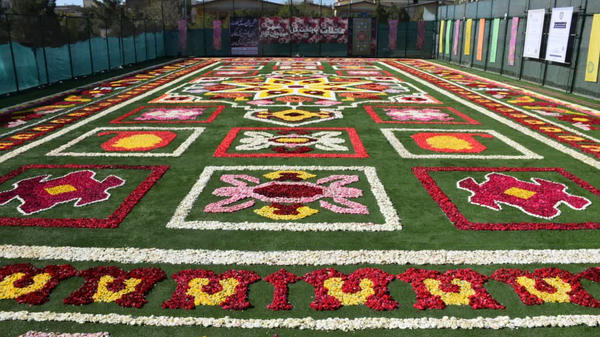 بزرگترین فرش گل خاورمیانه در محلات پهن شد.