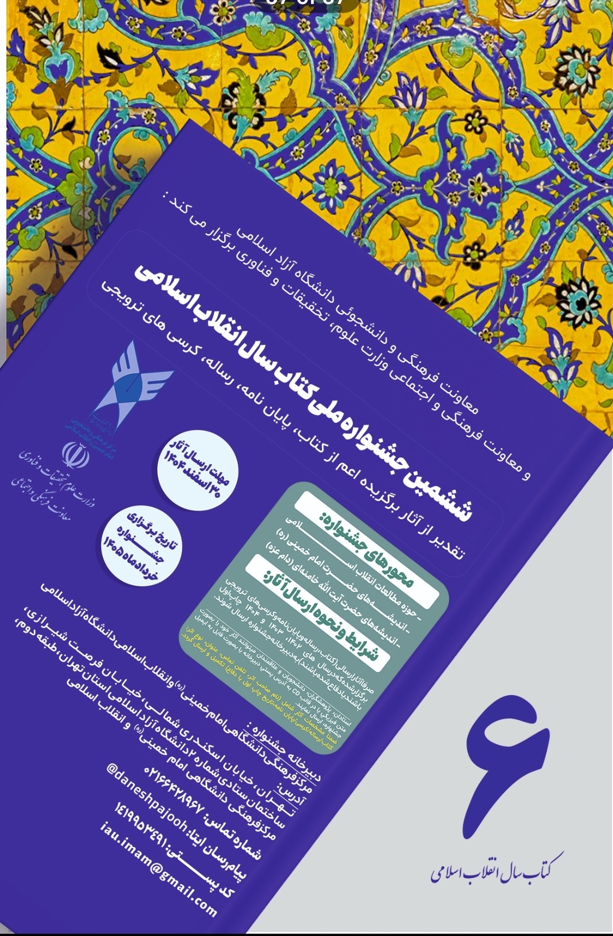 فراخوان ششمین دوره جشنواره ملی «کتاب سال انقلاب اسلامی» با همکاری مشترک معاونت فرهنگی و اجتماعی وزارت علوم، تحقیقات و فناوری و معاونت فرهنگی و دانشجویی دانشگاه آزاد اسلامی منتشر شد.