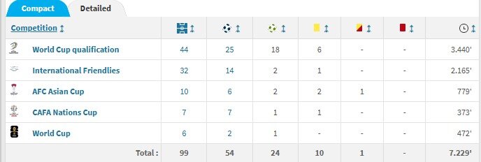 آمار تارنمای «ترانسفرمارکت» نشان می‌دهد که طارمی ۹۹ بازی ملی انجام داده است.